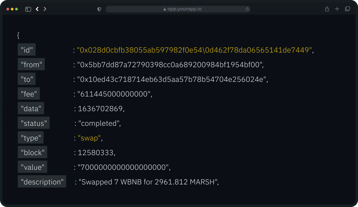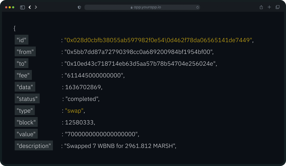 Get every detail of transactions including price at the time of transactions, token transfers and receipts.